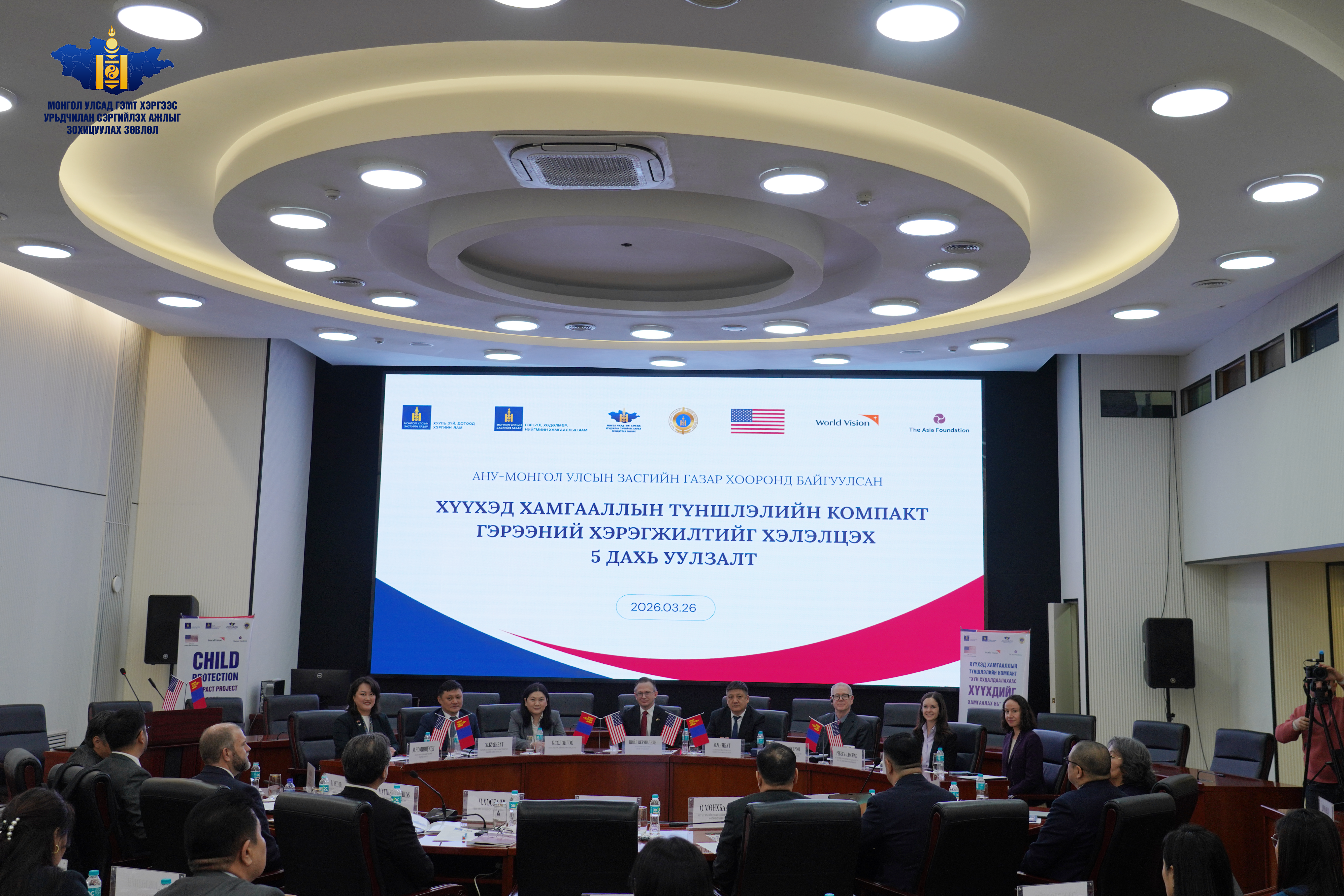 Америкийн Нэгдсэн Улс, Монгол Улсын Засгийн газар хооронд байгуулсан “Хүүхэд хамгааллын компакт гэрээ”-ний (ХХКГ) тав дахь удаагийн хоёр талт хэлэлцүүлэг өнөөдөр (2026.03.26) болж байна. Тус хэлэлцүүлэгт төрийн болон иргэний нийгмийн байгууллагын төлөөлөгчид оролцож, өнгөрсөн таван жилийн хугацаанд хэрэгжүүлсэн ажлын ололт амжилт, тулгамдсан асуудлаа хэлэлцлээ.