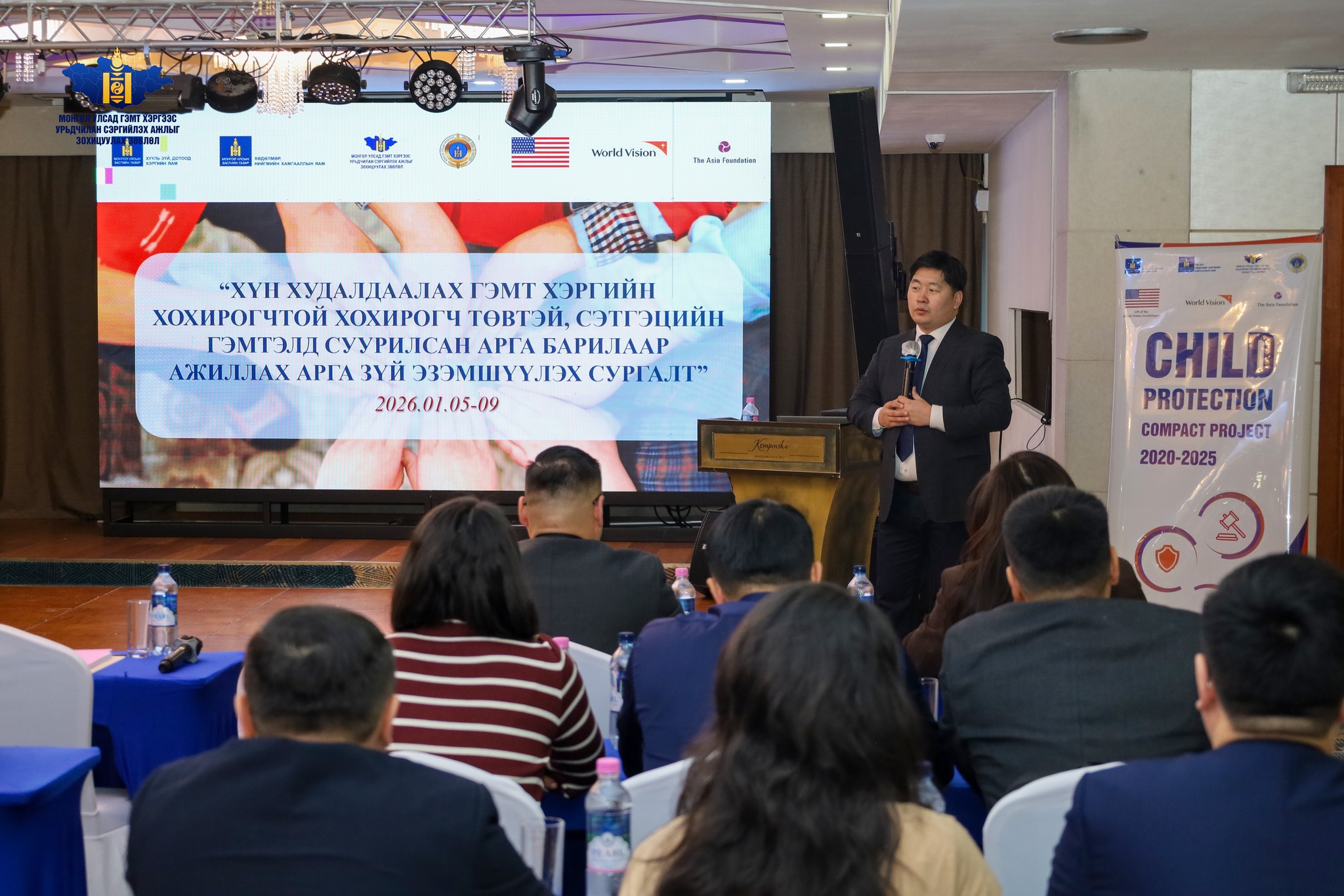 “Хүүхэд хамгааллын түншлэлийн компакт: Хүн худалдаалахаас хүүхдийг хамгаалах нь” төслийн хүрээнд Дотоод хэргийн их сургуулийн алба хаагчдад зориулсан "Хүн худалдаалах гэмт хэргийн хохирогчтой хохирогч төвтэй, сэтгэцийн гэмтэлд суурилсан арга барилаар ажиллах арга зүй эзэмшүүлэх" сургалтыг нэгдүгээр сарын 5-9-ний өдрүүдэд зохион байгуулж байна.