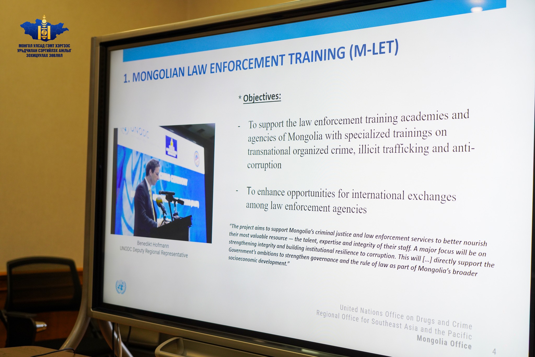 Уулзалтаар Нэгдсэн Үндэстний Байгууллагын Мансууруулах бодис, гэмт хэрэгтэй тэмцэх албанаас Монгол Улсад хэрэгжүүлж буй болон хэрэгжүүлэхээр төлөвлөж байгаа төсөл, хөтөлбөртэй танилцав.