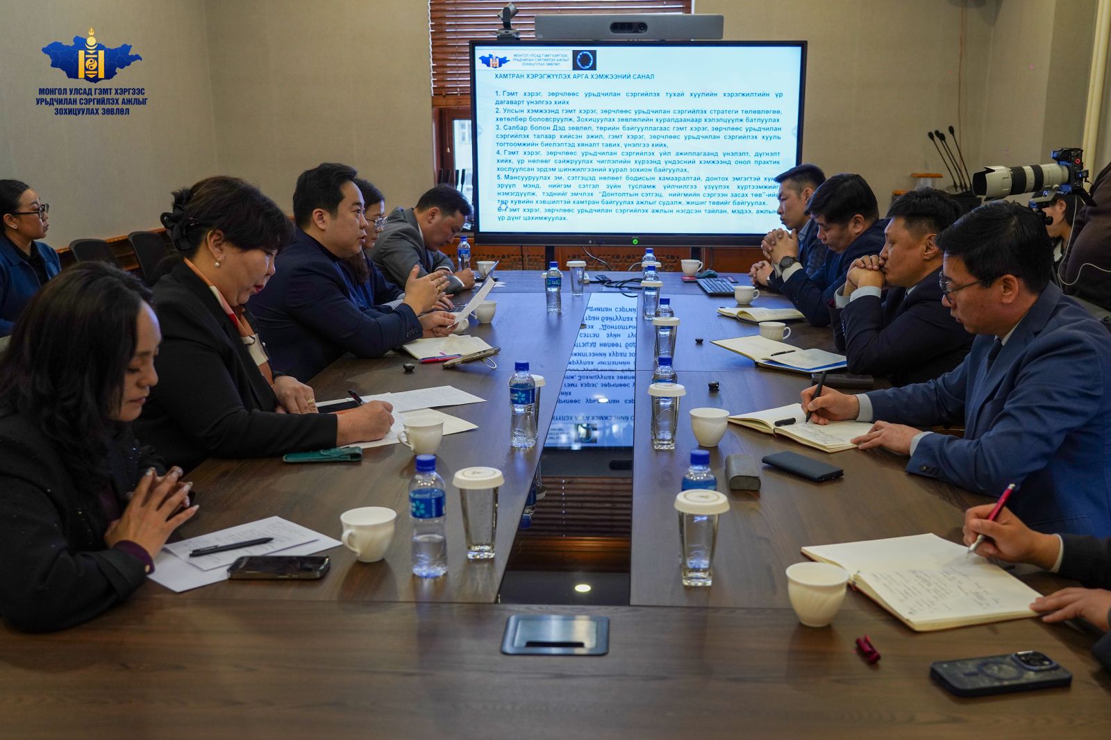 Уулзалтаар гэмт хэрэг, зөрчлөөс урьдчилан сэргийлэх стратеги төлөвлөгөө боловсруулах, урьдчилан сэргийлэх ажлын тайлан, мэдээ, үр дүнг цахимжуулах, хууль тогтоомжийн хэрэгжилтийн үр дагаварт үнэлгээ хийхэд хамтран ажиллах талаар санал солилцлоо.