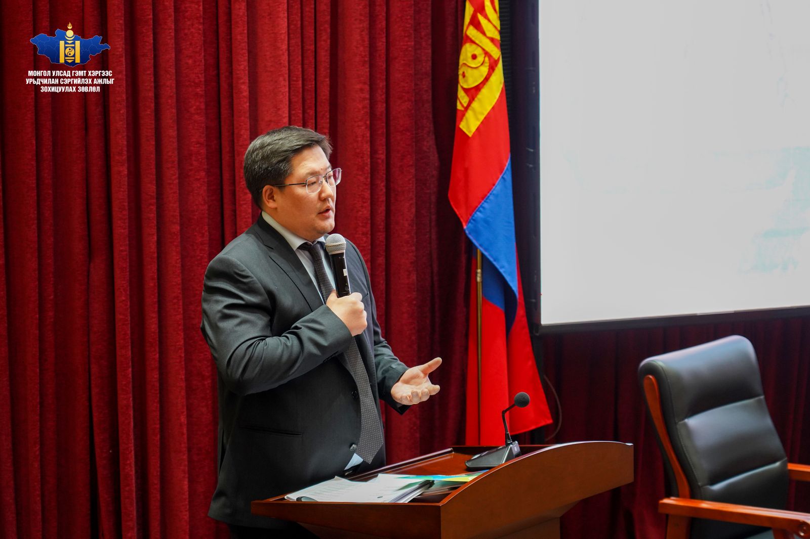 Хууль зүй, дотоод хэргийн дэд сайд Д.Мөнх-Эрдэнэ мансууруулах эм, сэтгэцэд нөлөөт бодисын эргэлтэд хяналт тавих хуулийн шинэчилсэн найруулгын төслийн үзэл баримтлалыг танилцуулж, тус хуулийн төсөлд мансууруулах эм, сэтгэцэд нөлөөт бодисын хор уршгийг өсвөр насны хүүхэд, залуучуудад хүргэхэд боловсролын байгууллагын үүрэг оролцоог нэмэгдүүлэх, донтох эмгэгтэй хүнд тусламж үйлчилгээ үзүүлэх, эмчлэх байгууллагын алба хаагчдыг чадавхжуулах, олон улсын хамтын ажиллагааг өргөжүүлэх болон ялын бодлогыг чангатгах зэрэг олон асуудлууд тусгагдсан талаар дурдсан.